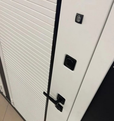 Фурнитура в черном цвете: Броненакладка врезная, накладка со шторкой, глазок , дверная ручка, ночная задвижка. Цилиндр ключ-вертушка (производитель не регламентируется), регулируемый эксцентрик.