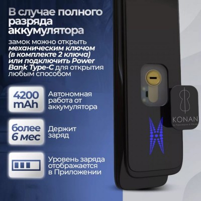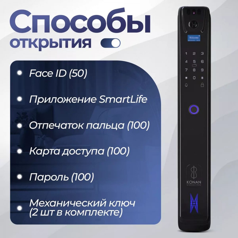 Открытие замка происходит следующими способами:- отпечаток пальца (90 вариантов);- цифровой код ( 10 вариантов);- карта пластиковая, брелок (90 вариантов);- с телефона, с..