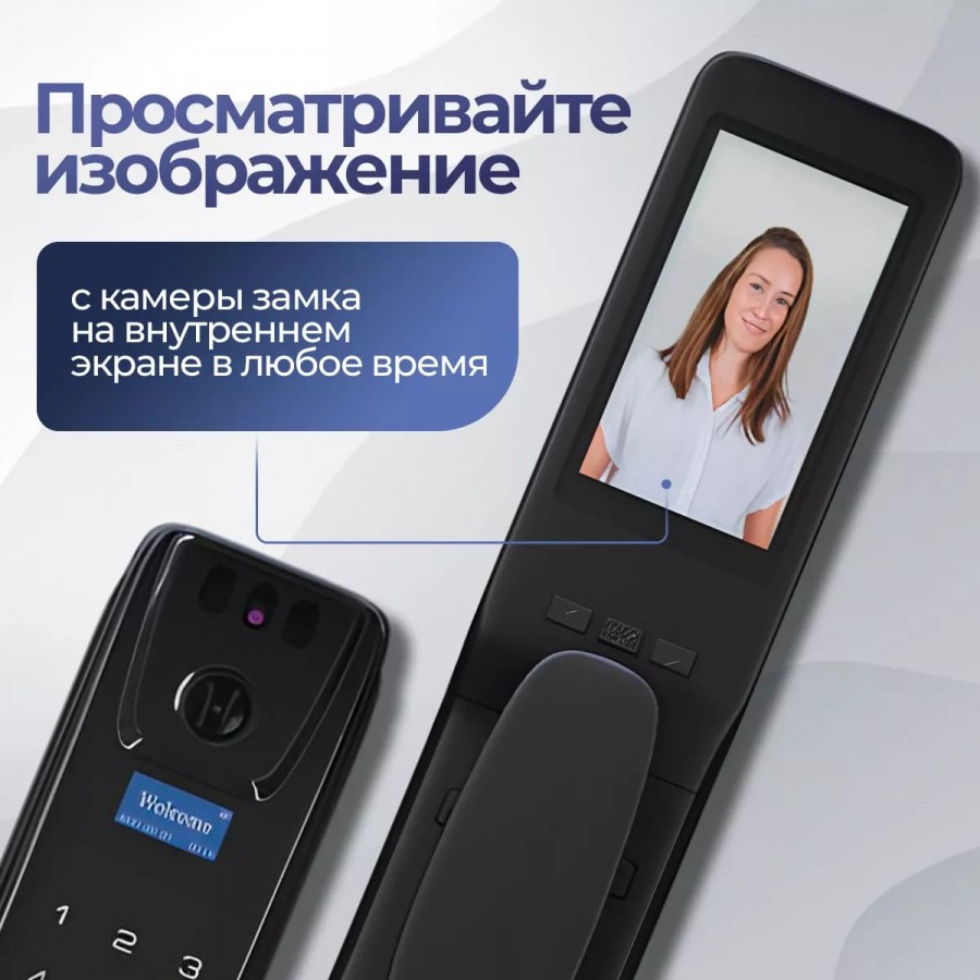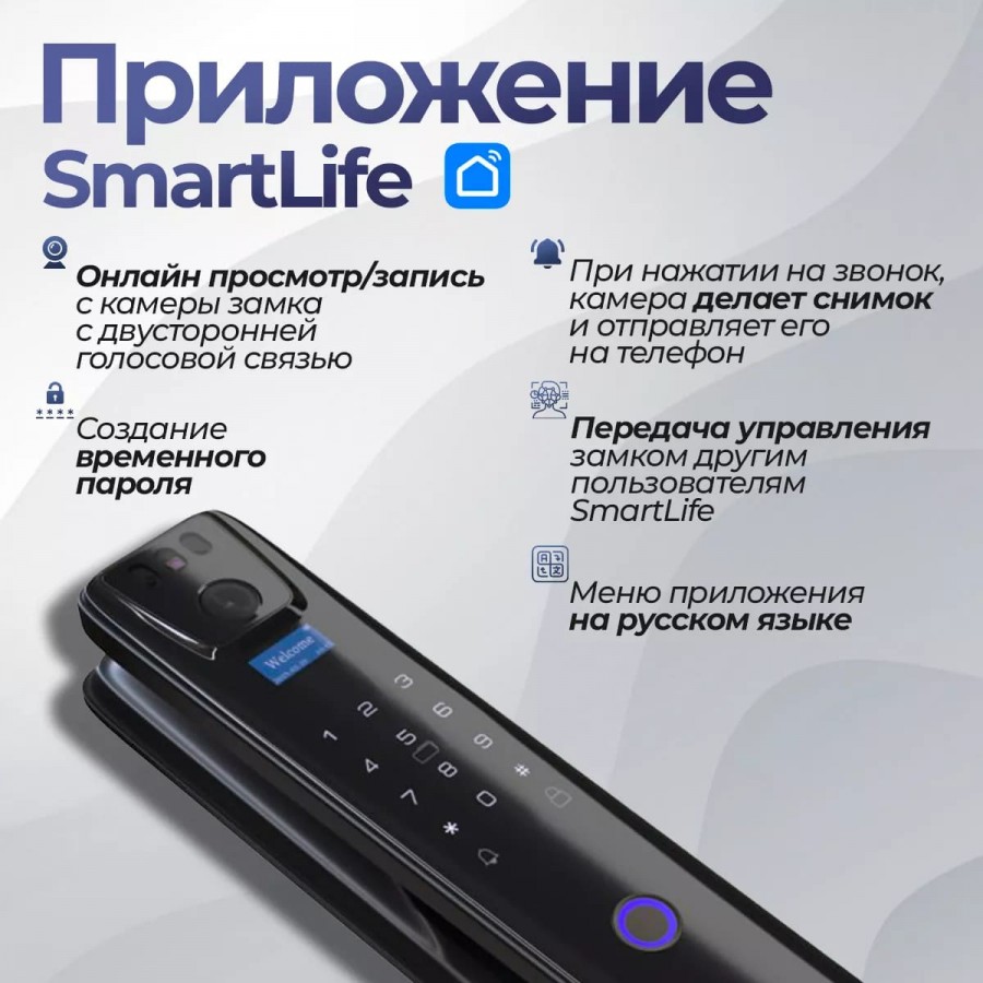 Электронный СМАРТ-замок, сканер отпечатков пальцев, управление через приложение, видеоглазок