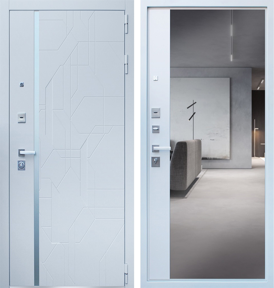 Представляем новинку от «АСД» ― модель «Эверест с зеркалом», сочетающую новые дизайнерские решения и наш многолетний опыт производства стальных дверей. Наружный лист (1,5 мм) отделан панелью МДФ в строгом цвете «белый матовый», внутреннее полотно отделано экошпоном в элегантном цвете «белый матовый». Безопасность модели обеспечивают два замка «Галеон» и стальная броненакладка. Благодаря качественному утеплению «Эверест с зеркалом» не только защитит ваш дом от недоброжелательных гостей, но и сделает его более комфортным.