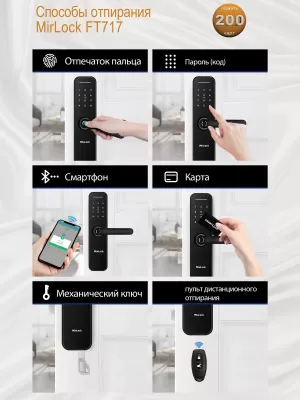 Электронный замок Smart lock FT717 (русифицированный) с функцией открывания по отпечатку пальца, брелку, смартфону или пин-коду