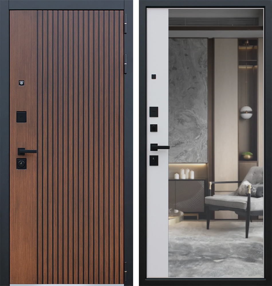 Входная дверь "Velvet" с зеркалом по особой дизайнерской разработке "АСД" для городских квартир и домов с закрытым тамбуром.